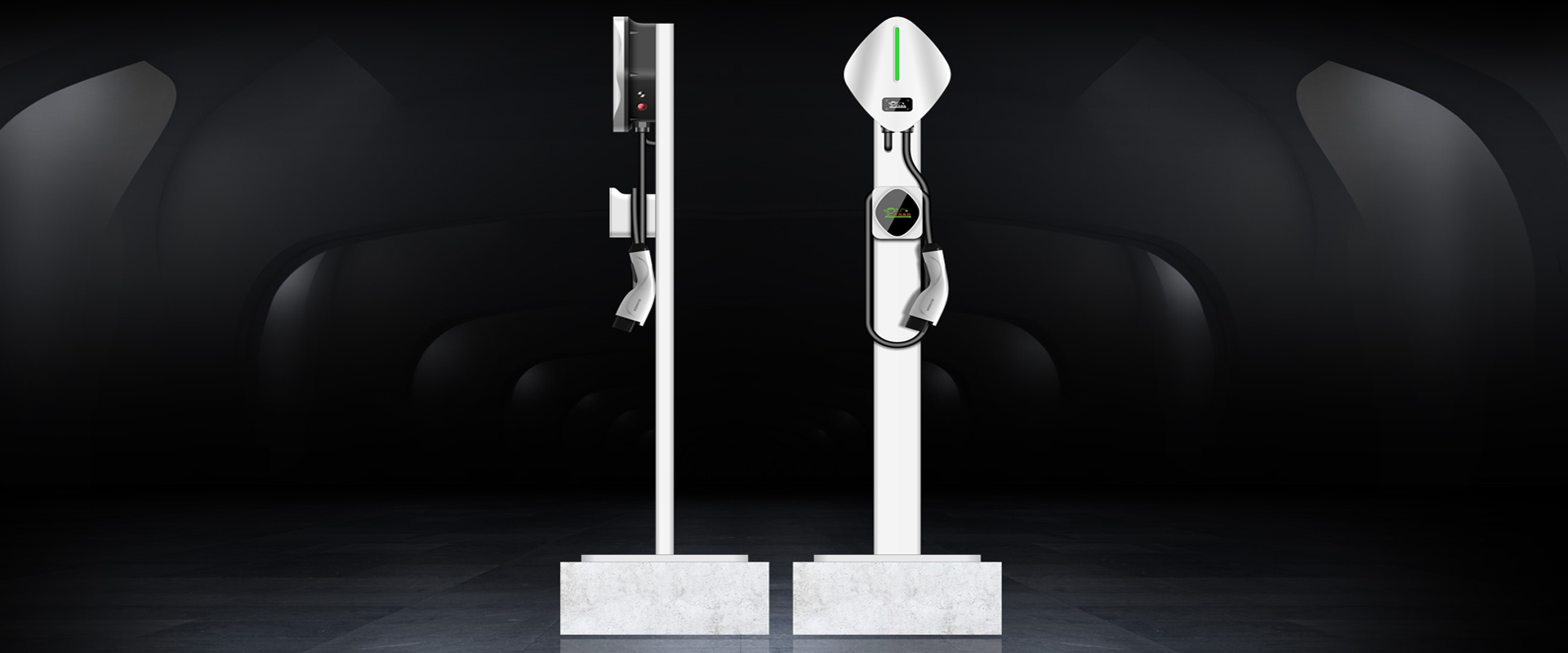借鑒汽車曲面過(guò)度和線條元素,充電樁整體設(shè)計(jì)極簡(jiǎn),面殼采用銀灰色和底盒的深灰色搭配,整體上感覺(jué)高端,大氣,時(shí)尚。面的過(guò)度形成的曲面變化,像汽車奔馳一樣,充滿速度和力量感。